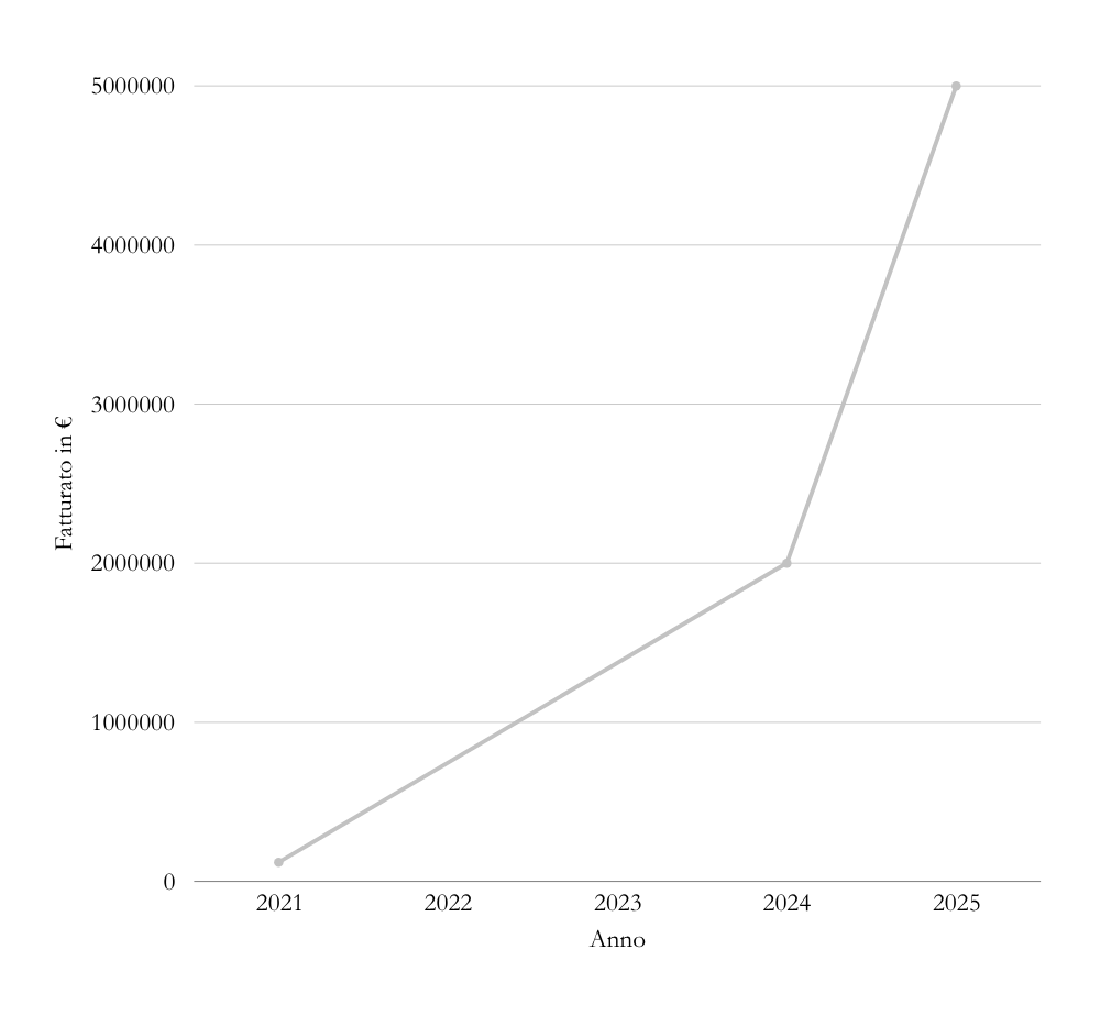 120.000 € di fatturato nel 2021, 2 milioni nel 2024, 5 milioni previsti per il 2025